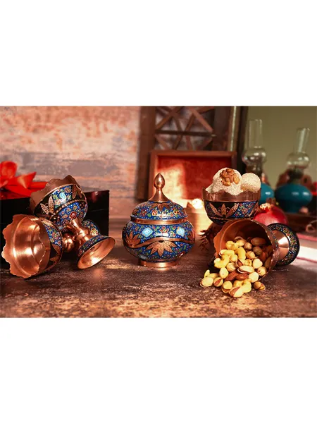 - محتوای ست : قندان الماس تراش و 4 آجیل خوری الماس تراش